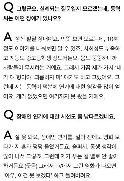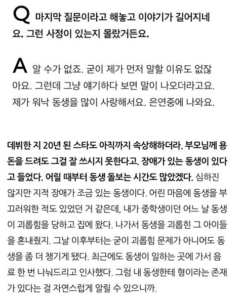 이도현이 발달 장애인 동생과
