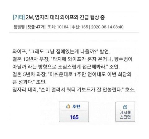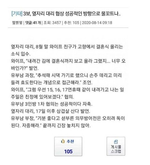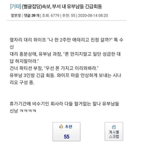 이거보고 너무 웃겼는데ㅋㅋ 보면 남자들은 와이프가 친정 몇일간다하면 안그런척하는데 속으로 좋아한다는걸 많이 봐서요.