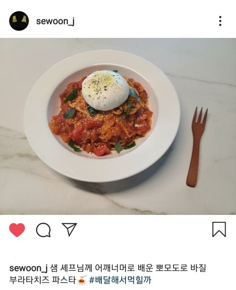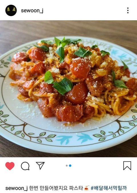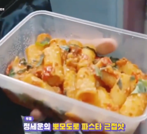 슨배릠(몬엑 민혁)을 위한 파스타를 만들어와서 선물