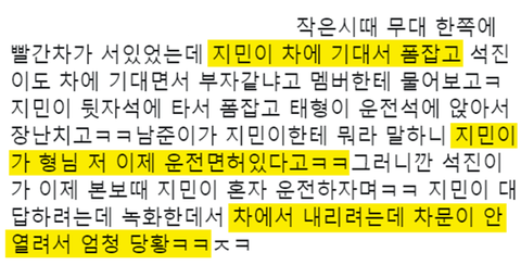 슈가 : 본인 소유 차가 있나요? 없잖아요 -ㅅ-
