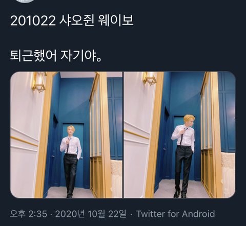 퇴근했어 자기야..
