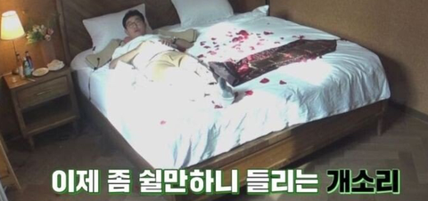 침대에 누워 쉬려고 하니까 개가 짖는 소리가 들려오고