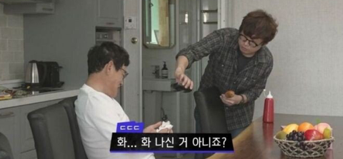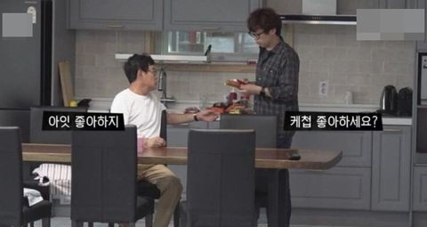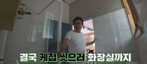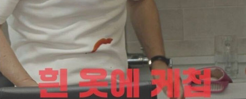 옷에 묻은 케첩을 씻으러 화장실에 들어간 경규옹