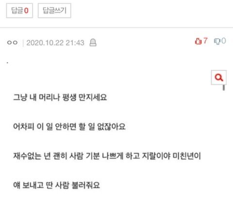 이악물고 아닌데? 너 못생겼지? 너 그래서 연애못하는거지?? ㅇㅈㄹ 떠는게 훨씬 더 추해보여....