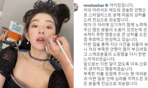 이 차이일 뿐 둘 다 똑같이 악질이야... 피해자가 스탭이라고 아이린 행실 가볍게 보지 마셈...