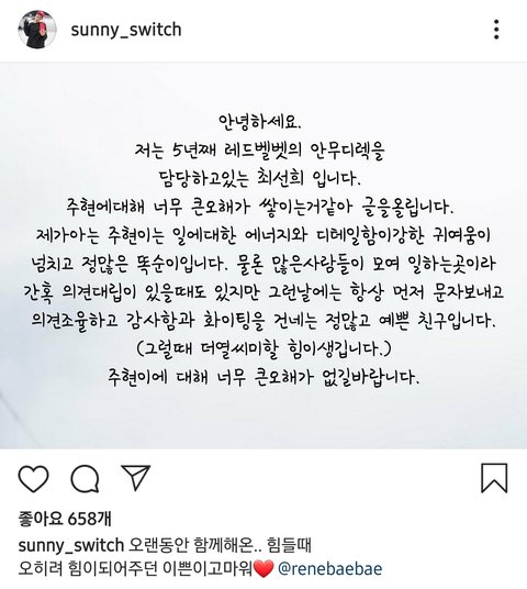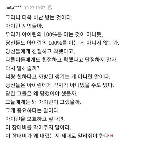 저 댄서분도 항상 아이린한테 선물받은거 손편지받은거 우리언니 최고다 멋지다 이러면서 스토리 항상 올려주셨는데 자기한테 그렇게 대해준사람이 갑질돌로 지금 아예 회복불가능상탠데