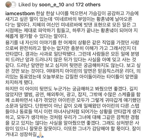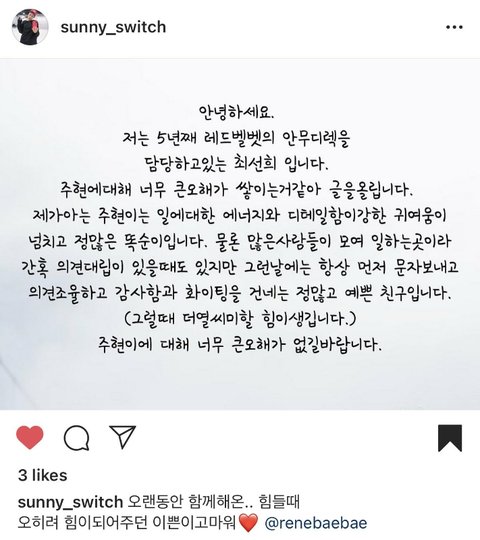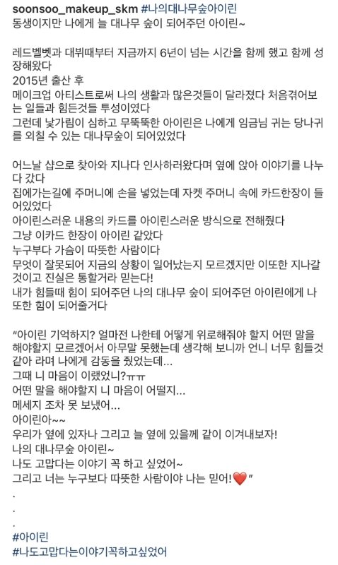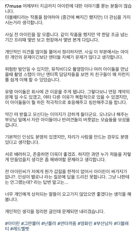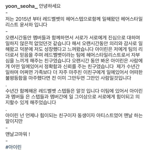 이번에 아이린 행동이 스타일리스트에게 상처가 되었으니 반성하고 더더욱 성숙해져야하는건 당연해