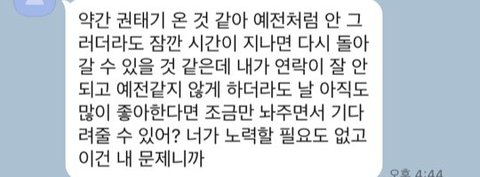 많이들 이별할때 예의를 카톡에서 따지는데 이별하면 그냥 남이에요... 잠수안타고 이별을 전하는것만으로도 할도리는 다한거에요