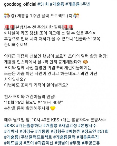 응 아이린논란 터진 당일날 슬기미담 올라온날 개훌륭 제작진이 올린 글이다 천사조이래