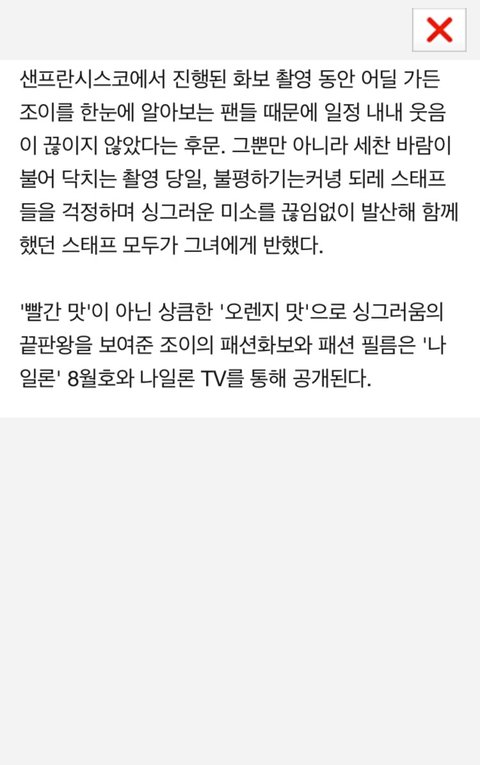 스탭 모두 조이한테 반했대ㅇㅇ 2018년도 나일론 화보 찍을때(딴말인데 조이 올해 잡지화보 7개나 찍음 거의 매달 찍음 스태프들이 연옌병인 애를 저렇게 많이 써준다고?ㅋ)