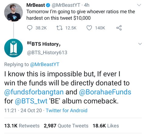 트위터 있으시면 이 트위트 좋아하시고 리트윗해주셔서 방탄 BE앨범자금이가 $10000(11백만 원)를 추가 할 수 있습니다.. 감사합니다!