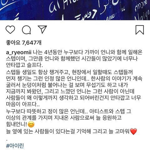 이런 거 보면 정말 괜찮은 사람이었던 것 같긴 함 .... 언니 진짜 왜그럈어 아무리그래도 그건 좀 심했잖아 충분히 앞으로도 잘 나갈 수 있었는데 왜 그랬어 진짜..