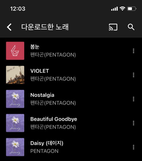 하하 얘들아 사랑해 다 다운받음❤️❤️ 노래 ㄹㅇ 다 좋더라 진짜... 도망가자랑 빗물 샤워랑 바이올렛 이랑 도미도 개좋더라 ㄹㅇㄹㅇ 다 씹명곡임 ㅠㅠㅠ 플리에 다 추가해놨당❤️❤️ 다들 고마오!! 펜타곤 더 잘됐으면 좋겠다!!!!!