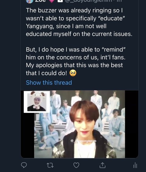 대만인으로서 독일에서 학창시절을 보낸 양양이 그 누구보다 ‘인종차별’이라는 주제에 대해서 더 많이 느끼고 경험했을 가능성이 큰데, 그러한 주제를 가지고 팬이 아티스트 상대로 교육을 했다? 이건 정말 무례한거지;... 양양이가 그 주제에 관련된 어떠한 일이 있었는지, 무슨 스토리가 있었는지, 양양이 입장은 1도 생각안하고 자기 할말만 한거잖아 지금. 너무 화나고 내 최애 가수가 팬으로부터 인종차별에 대한 교육을 받는 영통팬싸를 했다는게 너무 속상해....
