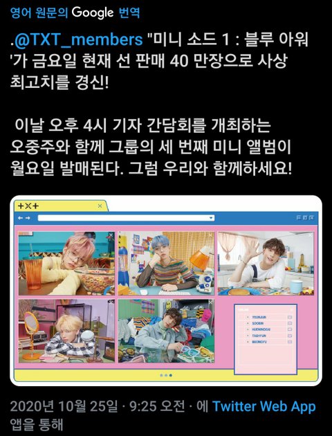 블루아워 선주문 40만장 돌파 자체 신기록