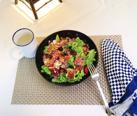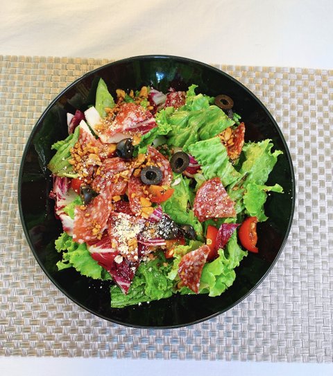 간단하게 샐러드 한접시 푸짐하게~살라미햄 상추 샐러드재료 : 싸다고 덥석 집어온 상추 다발 아무거나, 좋아하는 트래비스, 미니 방토,살라미 햄, 안주로 먹는 매운 땅콩, 올리브, 발사믹, 츠유약간, 후추, 가루 치즈