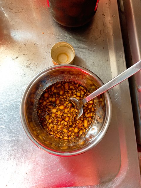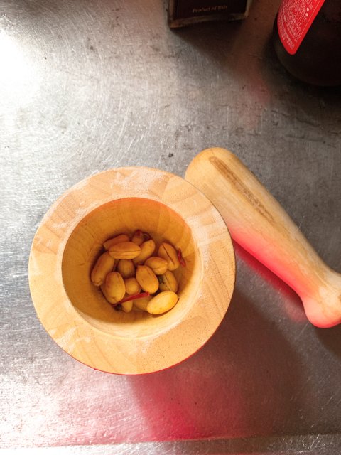 냉장고 털어 나오는 재료.미니 나무 절구에 땅콩을 뽀사주고발사믹, 츠유, 후추에 뽀사준 땅콩을 섞어대충 내 입먹을 크기로 자른 풀떼기에 끼얹져 주고 마무리는 가루 치즈로~꼬독꼬독 닭똥꼬집 볶음
