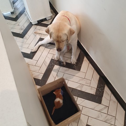 10월 7일, 카페알바생이 공원에서 꼬마(리트리버 이름)를 산책 시키고 돌아와서는, 공원에서 진짜 작은 고양이가 꼬마를 쫓아왔다고 했음. (저는 카페 운영 중)