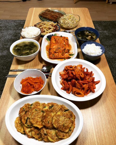 생일상으로 만든 집밥! 두부조림,버섯전, 김치전병,감자채볶음,콩나물무침,소고기미역국.... 정말 많이 했네요 ㅋㅋㅋㅋㅋㅋㅋ