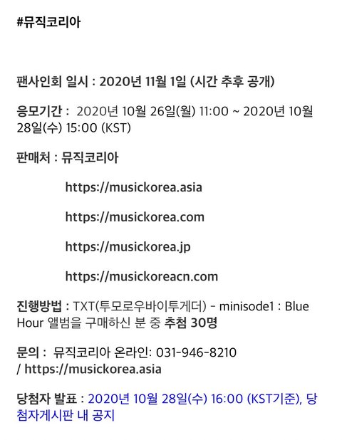 - 응모기간 : 2020년 10월 26일 (월) 11:00 ~ 2020년 10월 28일 (수) 15:00