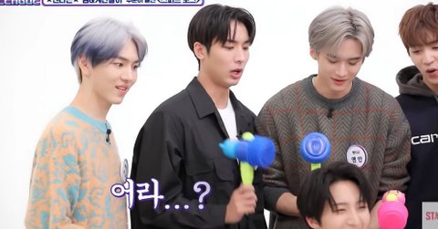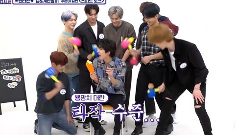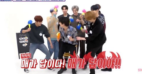 근데 거짓말하거나 대답못하면 뒤에서 멤버들이 망치때리기