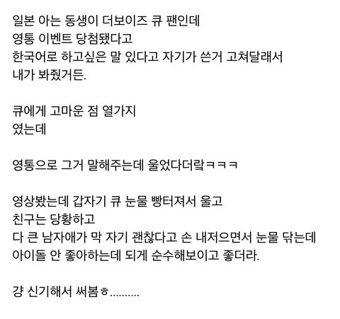 뒷얘기? 일화? 일본팬이 한국어로 말해줬다는데 나 같아도 감동 왕창 받았을듯