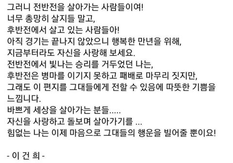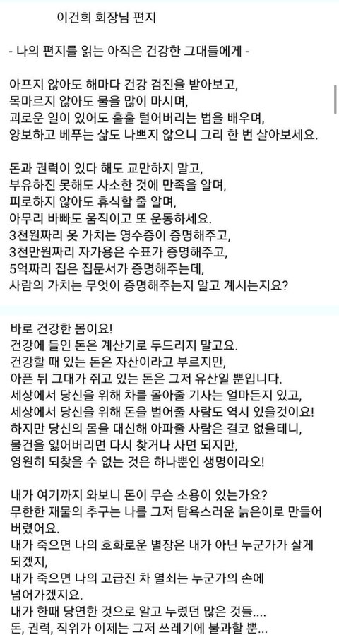 페이스북 감성글 올리는 색과 체 페이지에서 이건희 회장님 편지라며 글이 올라왔음