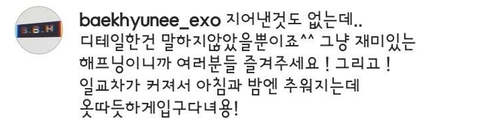 어느날 백현의 인스타그램에 올라온 글
