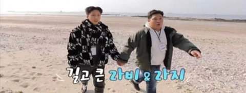 손잡고 걸어오는 라비와 라지(문세윤)