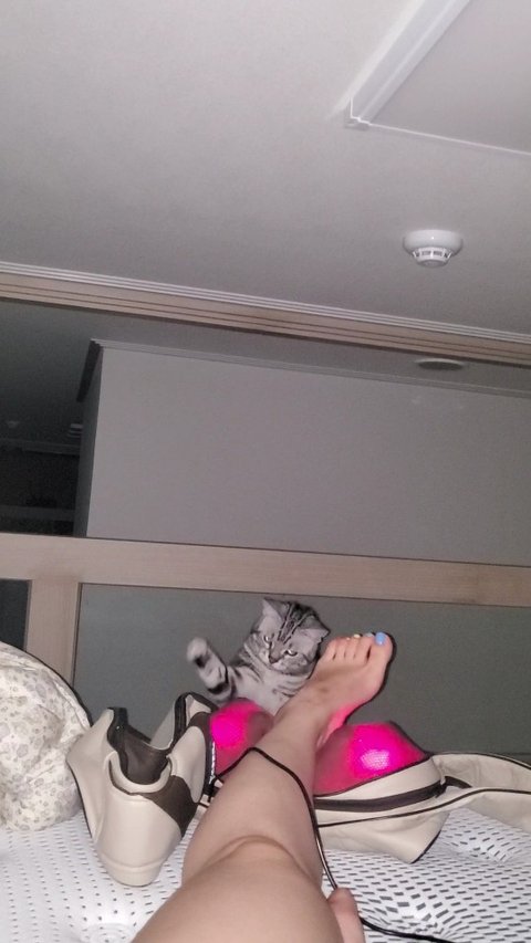 이건 나 침대에서 자기전에 종아리가 아파서 어깨마사지기로 알풀고있는데 마사지볼이 계속 돌아가니까...