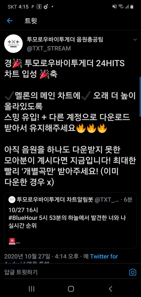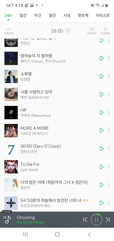 스밍과 멜론 인기가요 투표부탁해!! /4시차트