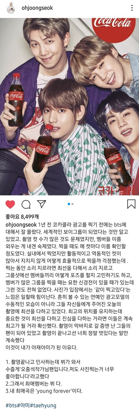 왕년에 무한도전이나 도슈코 좀 봤던 사람들이라면 한번쯤 들어봤을 오중석 작가님이 예전에 방탄이랑 코카콜라화보작업 같이 하셨던 후기 남기신거 가져왔어~