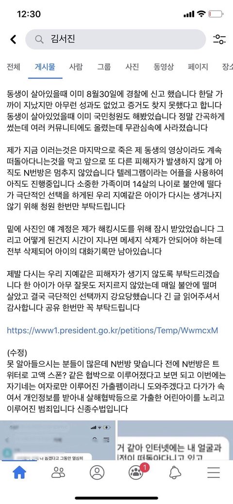10대판에 올라온 글이고 저는 원 글 작성자가 아니라 퍼 온 글이라는 점 양해 부탁드립니다. 다른 분의 글을 무단으로 퍼 온 것이 잘못된 일임은 알고 있으나 사안이 중대하다 생각해 10대 뿐만 아니라 더 많은 분들이 봐주시고 청원에 동참해주셨으면 하는 마음에 씁니다.