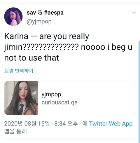 유지민이 카리나라는걸 그 문자를 공개한 사람이 처음으로 언급했기 때문에 문자가 진짜라고들 우기는데