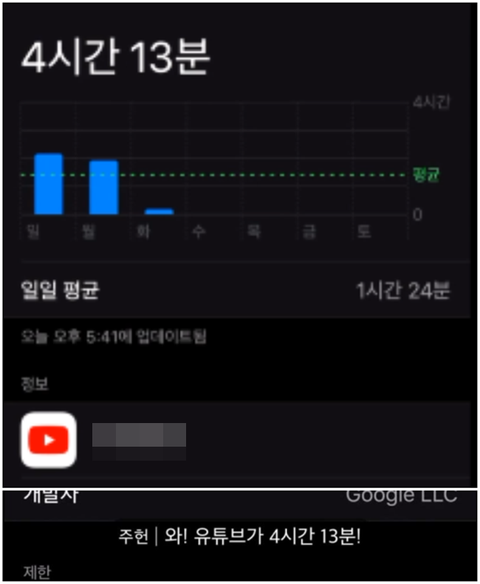 주헌이가 셔누 폰보는데 유튭 사용 시간이 4시간이 넘음ㅋㅋㅋ