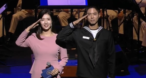 진행을 맡은 박보검은 해군 정복을 입고 무대에 올라