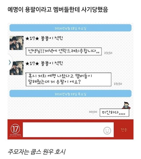 데뷔 전 아프리카 티비 방송이나 영상들 보면 민규한테 도겸이라고 하는 모습을 가뭄에 콩나듯 볼 수 있다함ㅋㅋㅋㅋㅋ