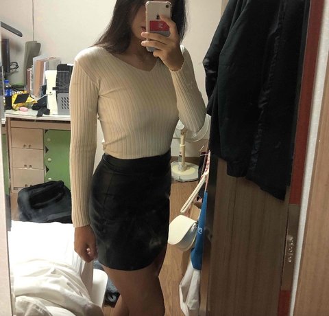 몸매가 너무 드러납니다. 무릎정도 스커트에 편안한 스타일의 티가 좋지 않을까요?