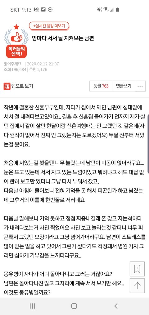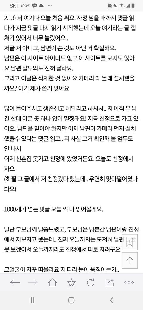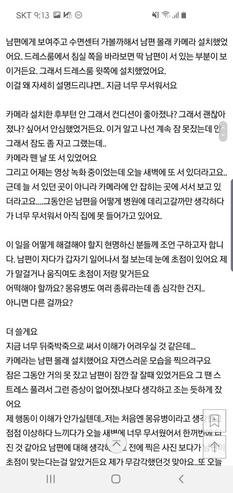당시에 가장 신빙성 있어보이는 댓글이 님 남편 성도착증있음. 자고 있거나 죽었거나 저항불능 상태인 여자에게 흥분. 님을 내려다보면서 자위하고 있었을거임. 대충 이런 내용이었... 소오오오름...