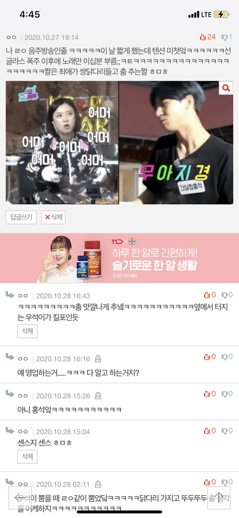 일부러 좋은 글로 밀라고 위에 덮어쓰긴 햇는데 ㅈㄴ보기싫음....아예 댓삭할까...? 저글 톡선 셋째 페이지인데....