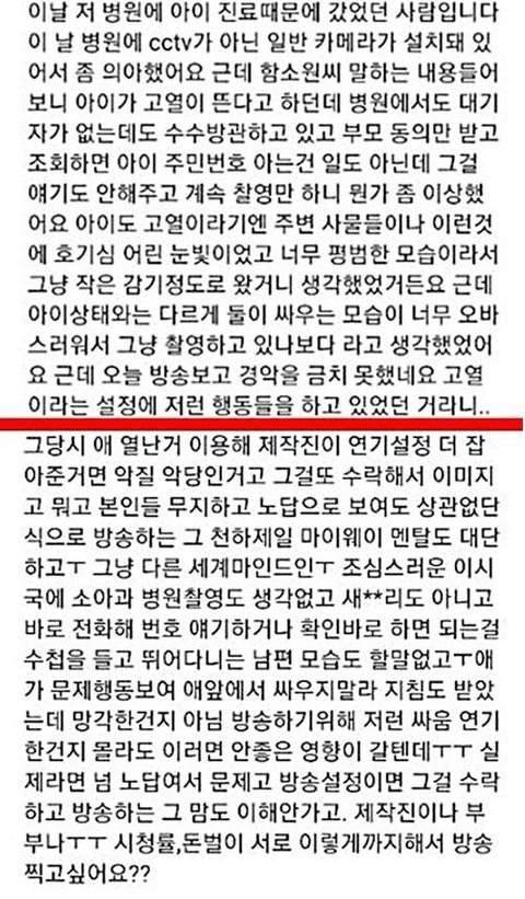 부모가 소재가 없어서 애 아픈 걸 가지고 연기를 합니까????
