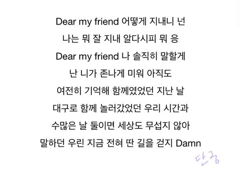 참고로 보라색 글씨는 가사 첨부해 온 출처얌
