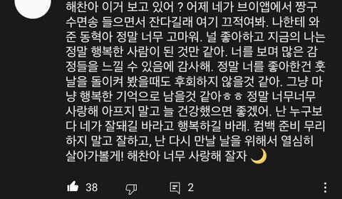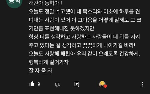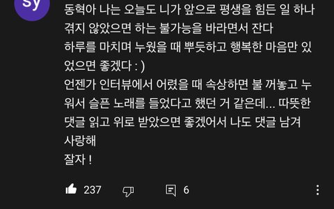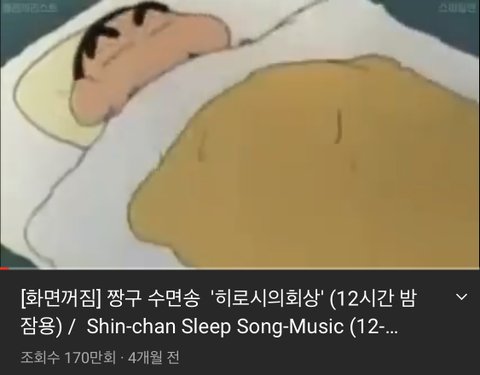지난번에 해찬이가 짱구수면송 듣고 잔다고 했던 게 생각나서 들으려 검색해봤는데 따뜻하고 예쁜 댓글들이 너무 많아서 이 밤에 기분이 몽글몽글해졌어