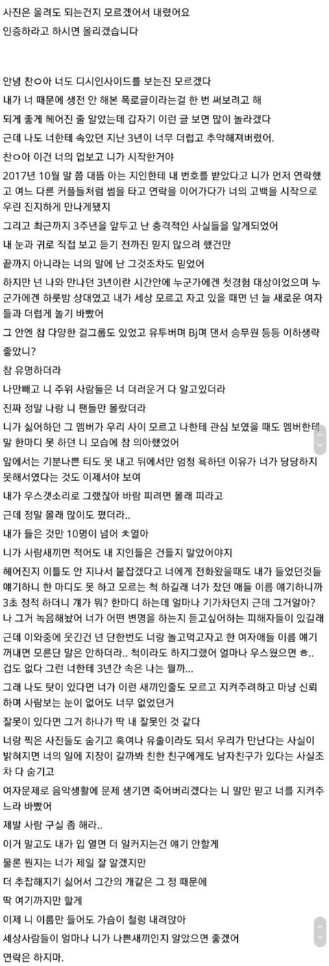 엑소 찬열 전여친이 올린 폭로글