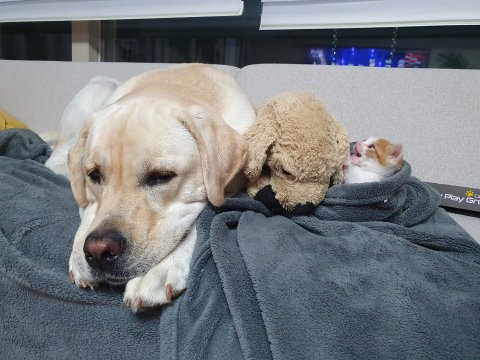 꼬마는 4살이라 점잖은데에 비해 젤리는 캣초딩도 아닌 캣유딩이라 틈만나면 물고 달려들며 장난치려해요ㅋㅋ 그래서 꼬마 쉬라고 가운데에 인형을 놓아서 막아줬어요 ㅋㅋ