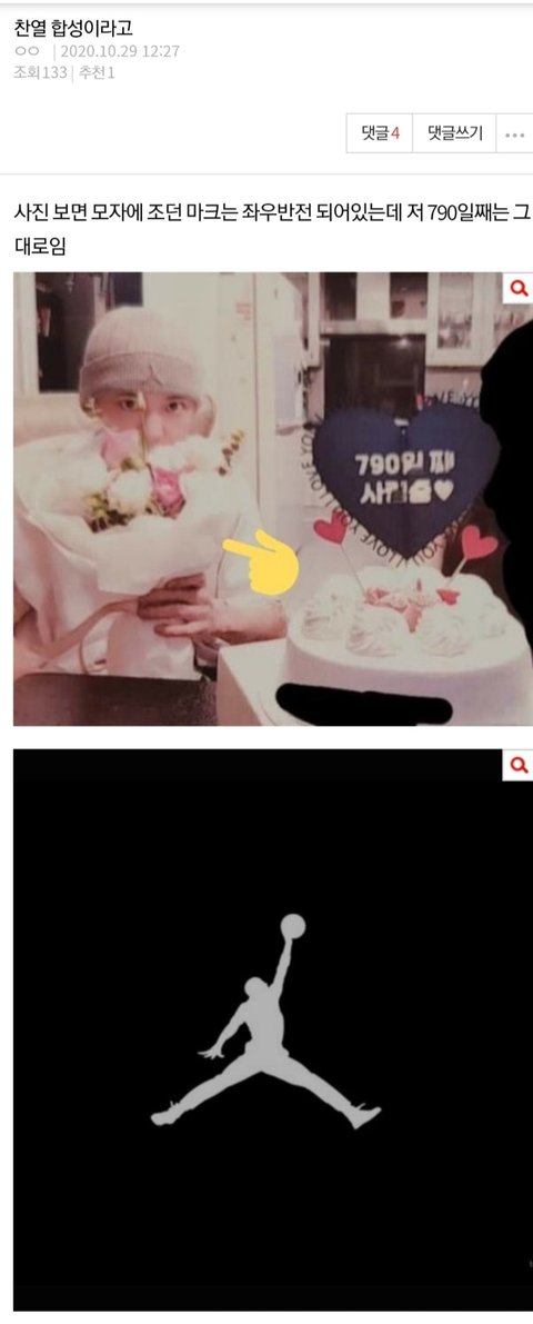 그래서 사진자체가 좌우 반전된거라 조던 마크도 좌우반전되었지만 글씨는 저렇게 제대로 보이는거임