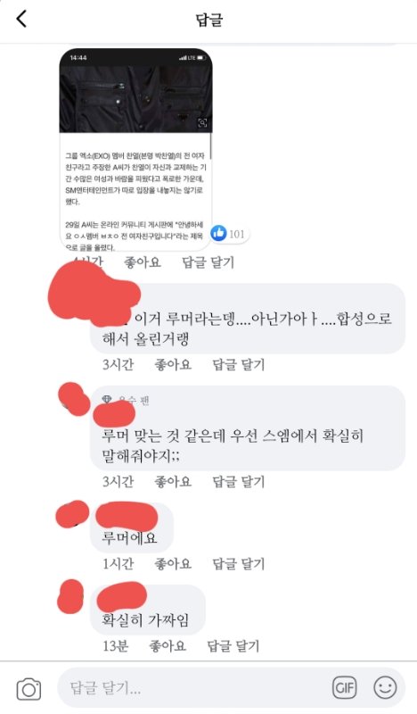 페북 찬열 글 댓상태;;;
