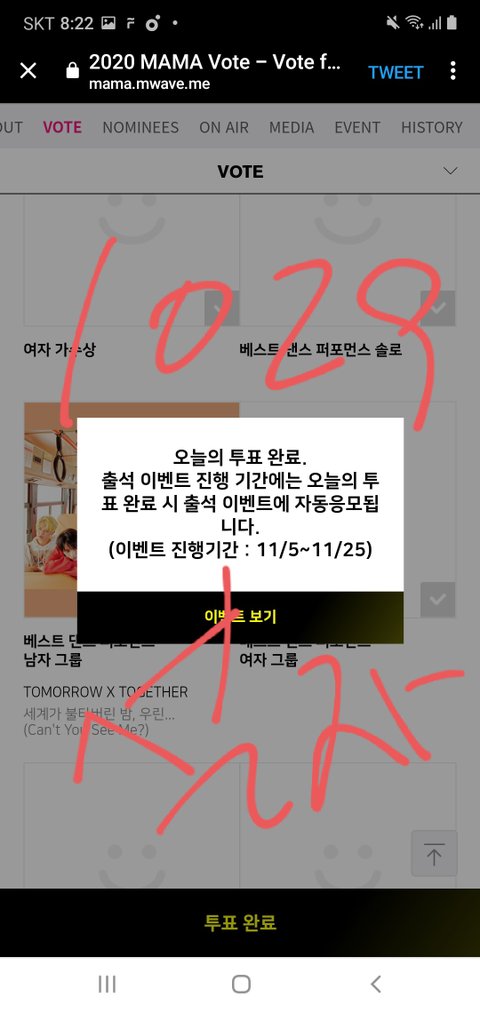 우리지금 총 3개투표야 멜론인기가요, 쇼챔, 마마 .