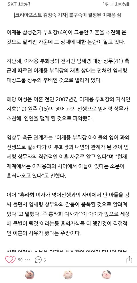 삼성전자 부회장 이재용의 전 부인 임세령과 (공식적으로만) 6년째 연애중
