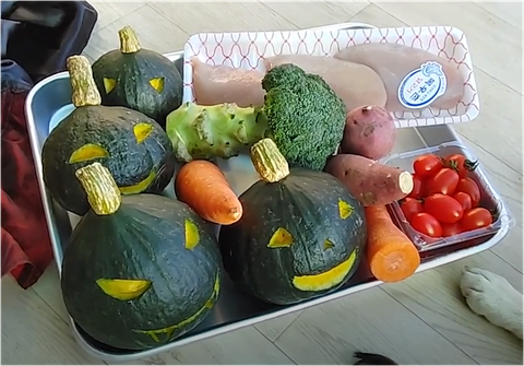 재료는 강아지가 먹어도 되는 단호박, 당근, 고구마, 토마토, 브로콜리, 닭가슴살